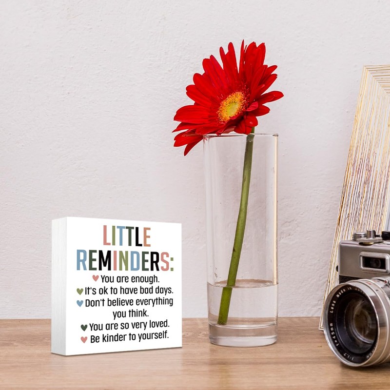 Little Reminders Sign, You are Enough Sign, Affirmation Sign, Rustic Box Sign Decor Tabletop, Motivational Office Desk Sign, Home Decor for Bedroom, White Wooden Box Sign, Encouragement Gift