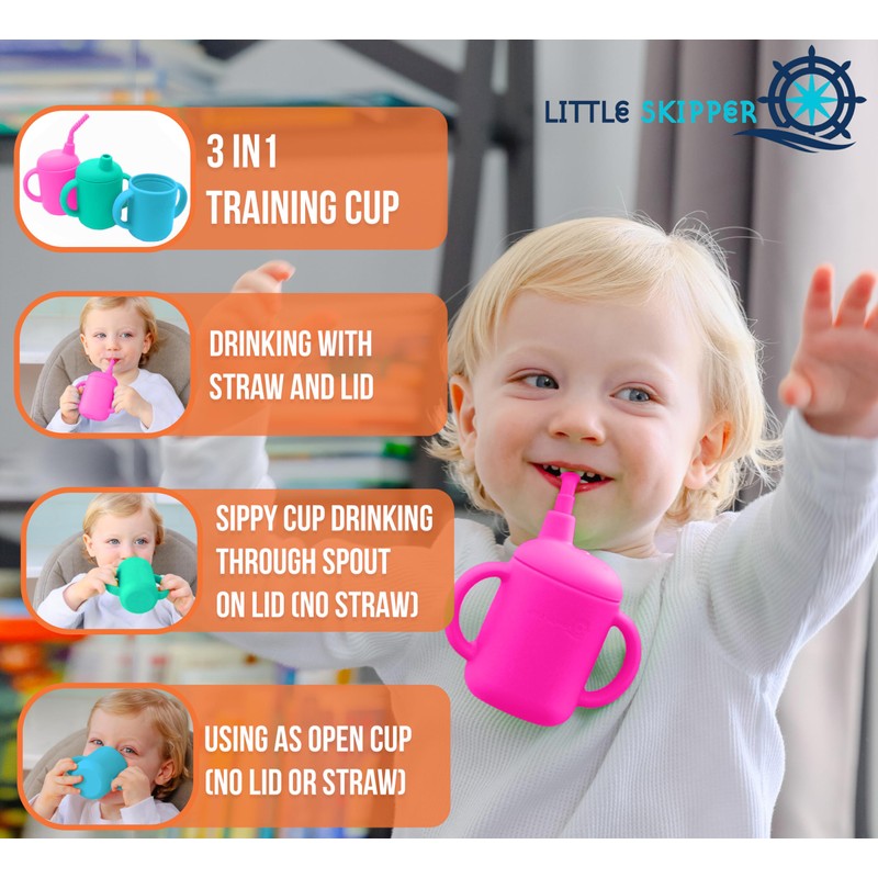 - ✅ A SIPPY CUP WITH A UNIQUE STRAW: The Little Skipper silicone baby cup with straw is a little cup for tiny hands, with a custom designed straw to support swallowing, teething and splashes! These soft silicone baby cups 6-12 months, transition from straw cup to baby sippy cups to open training cup.