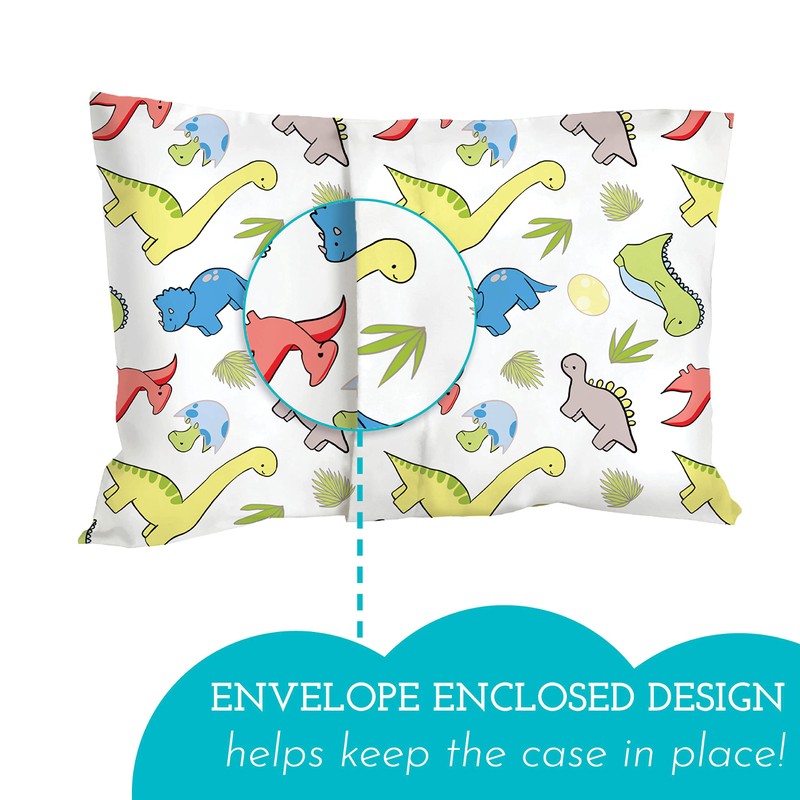Little Sleepy Head Toddler Pilllowcase 13 x 18 - 100% Cotton & Hypoallergenic (Dinosaurs - White)