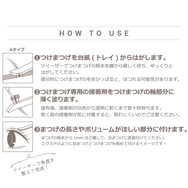 • With this one piece, you can create a firm and bundled eyelashes. Comes in two types: A type with a presence and an elegant V type with a natural volume