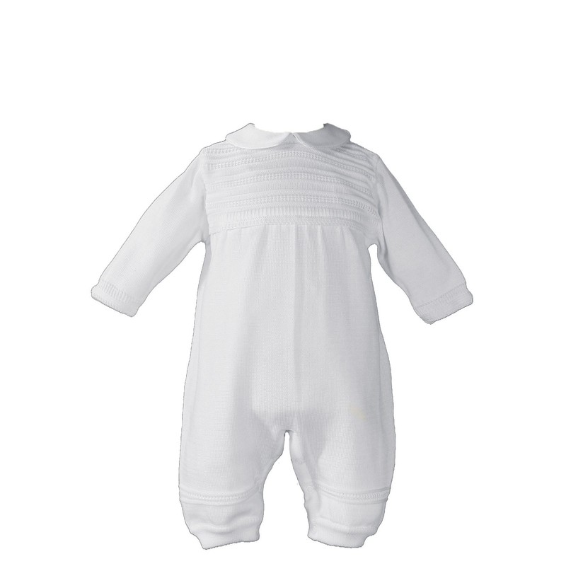 Little Things Mean A Lot Boys Knit White Christening Baptism Coverall, 3 Month