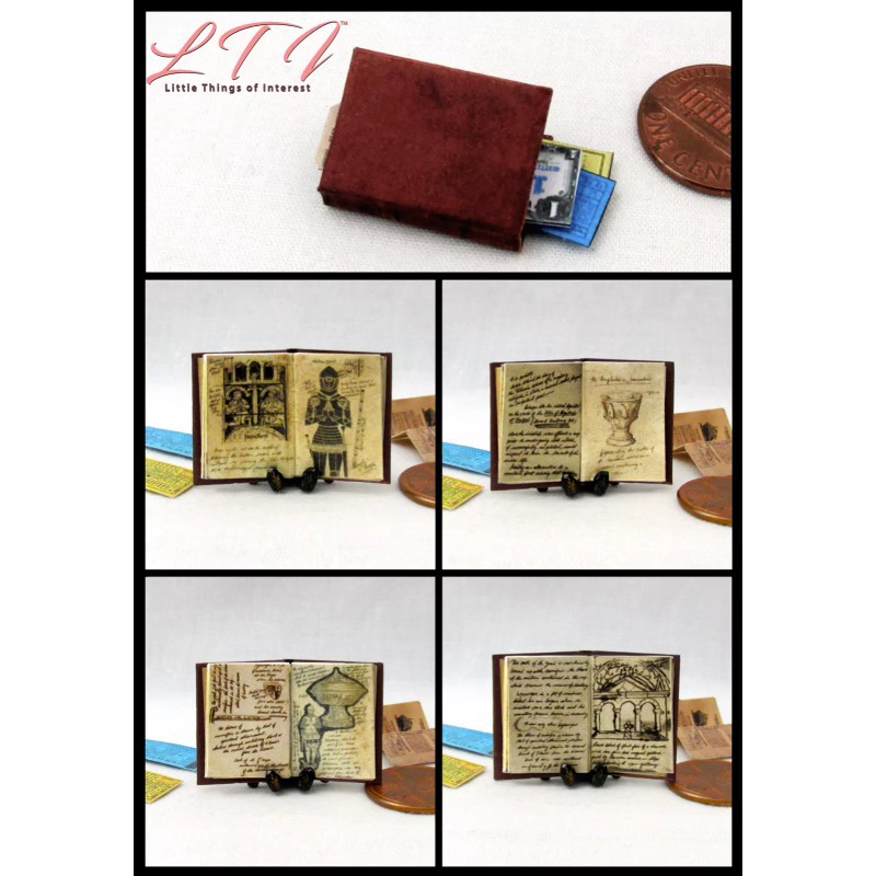 This detailed miniature of Henry Jones, Sr.'s famous Grail diary is filled with illustrated pages inspired by the original prop from the film. The JONES DIARY Book is 1:12 scale, opens and has 18 fully illustrated pages. Also includes two different LARY train transfer tickets, a miniature reproduction of vintage currency, and a Zeppelin ticket. It measures approximately 3/4 of an inch high by 1/2 of an inch wide, it will look GREAT open or closed.