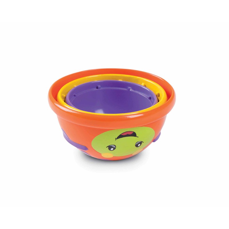 - Stack the cups on top of the turtle and press down on the top cup to watch the turtle shake them all off