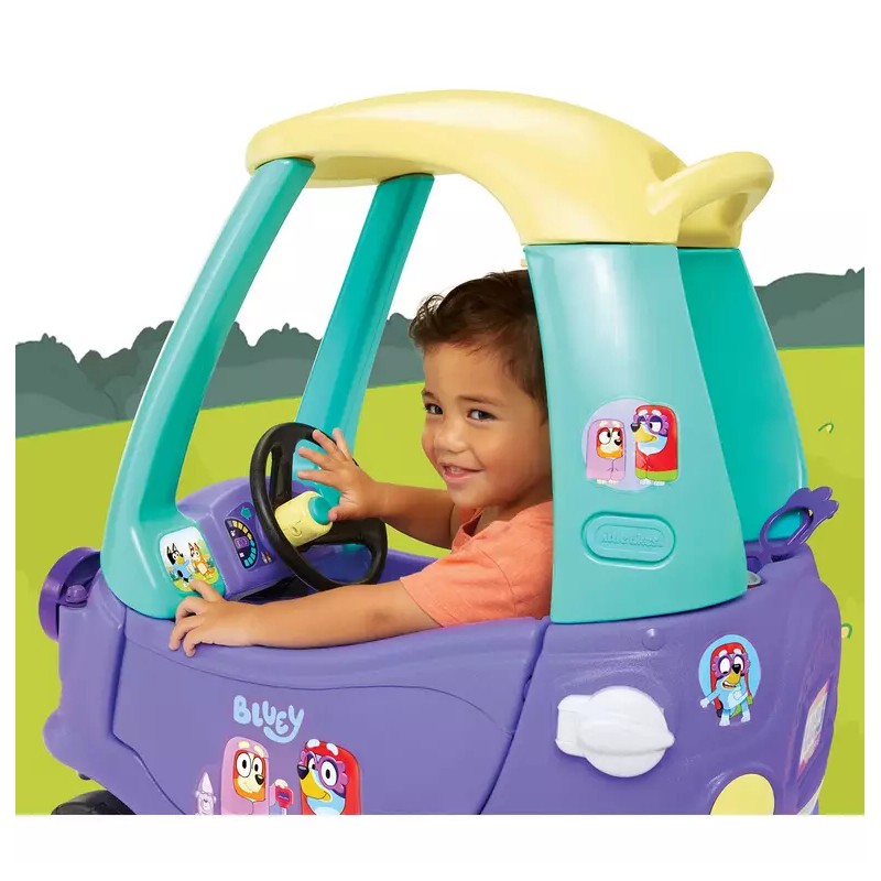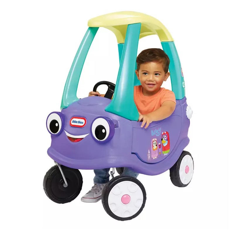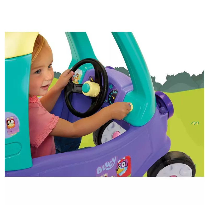 Introduce your little one to a fun spin on the classicLittle Tikes Cozy Coupe with this Bluey-themed ride. This delightful toy car issure to become a favorite, providing hours of imaginative play and outdoor fun.It's adorned with adorable Bluey decals, adding a touch of charm and making itinstantly recognizable to any fan of the popular children's show.