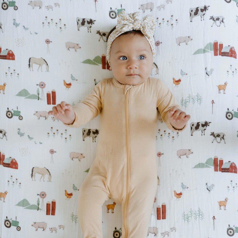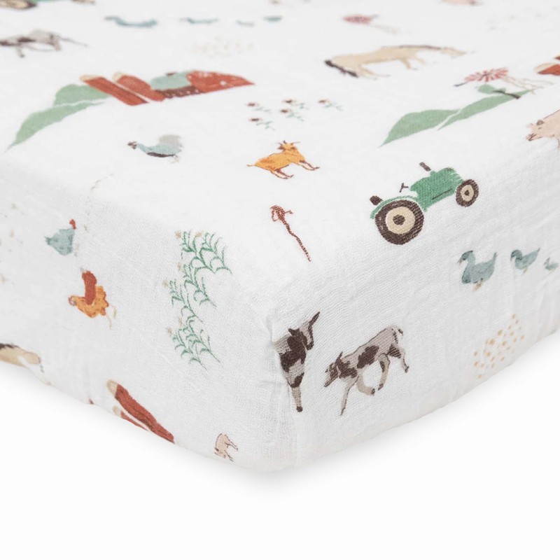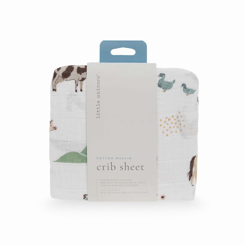 Little Unicorn Fitted Crib Sheet | 100% Cotton Muslin | Super Soft | Sized for Standard Baby Crib & Toddler Mattress | Machine Washable | 52” x 28” x 6” (Farmyard)