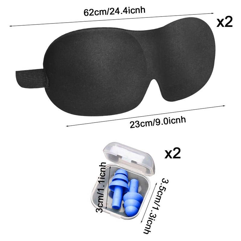 - 1. Paket beinhaltet: 2 3D Nachtmasken mit 2-Paar Ohrstöpsel. Zwei Mengen erfüllen den täglichen Ersatzbedarf.