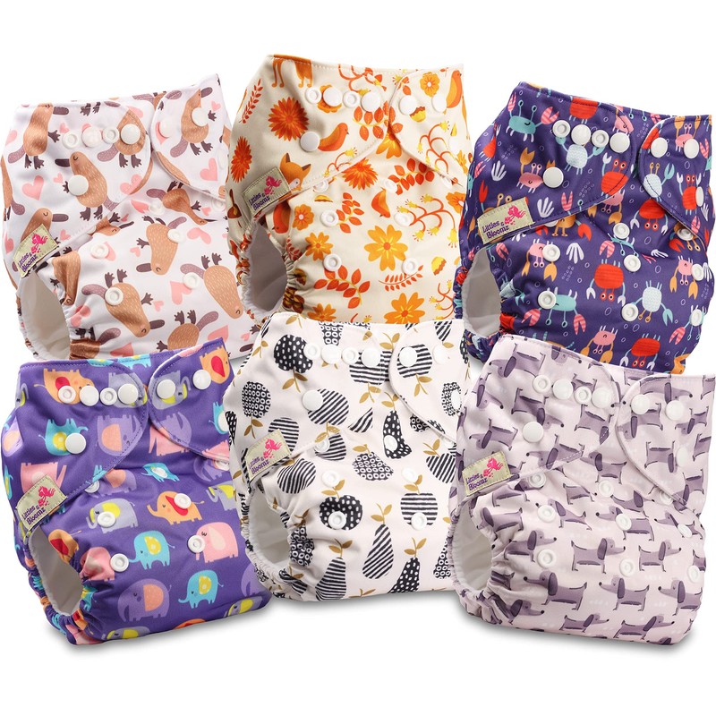 Littles and Bloomz Reusable Nappy, Standard Popper, 6 Nappies, FLP2-0602