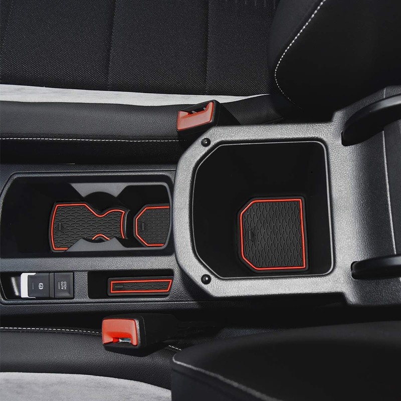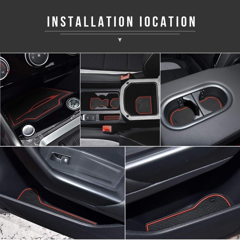 LITTOU KOLOME 13 Pieces Anti-Dust Non-Slip Inner Door, Cup, Arm Box, Storage Mat Rubber Mats for TROC 2018-2021 2022 2023 2024 (Red)