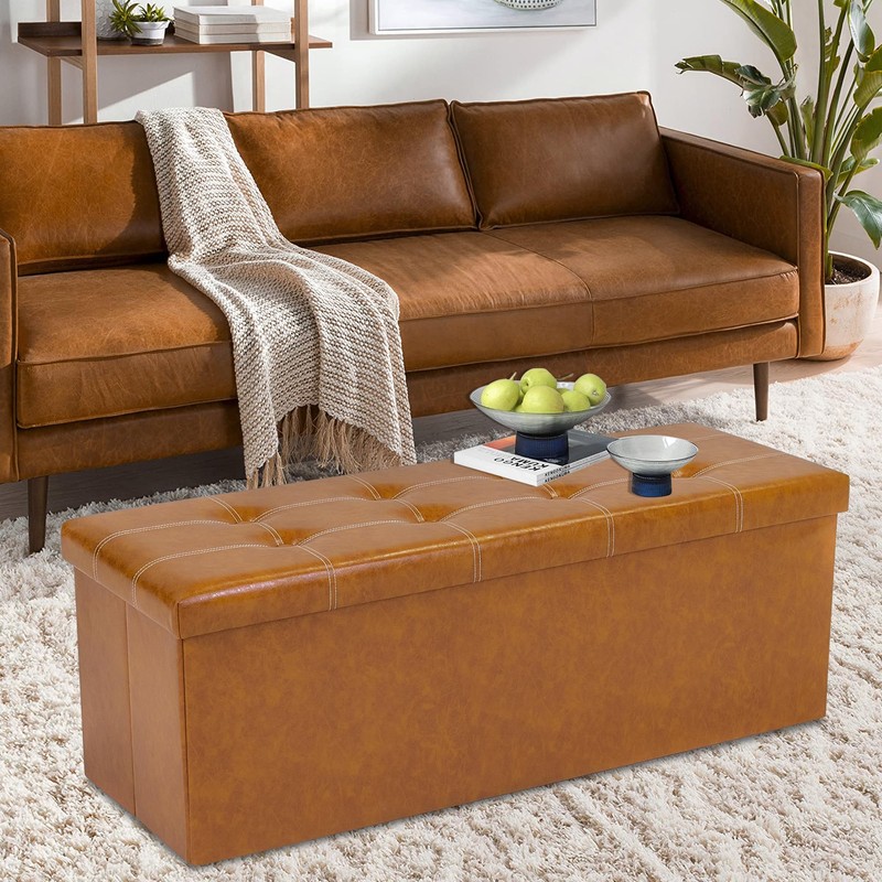 LITZFUR 43 Inches Folding Storage Ottoman Bench, PU Leather Storage Chest, Fo...