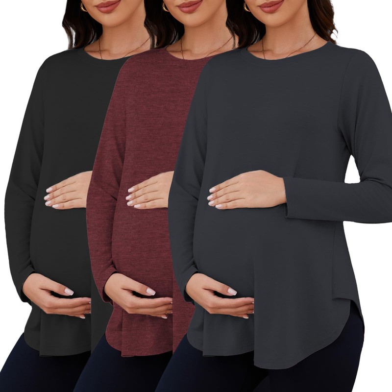 - 【Chic Side Slit Design】A modern side slit brings a fashionable edge to these maternity tops. Wear them with maternity leggings or jeans—perfect as maternity clothes for work or casual weekends.