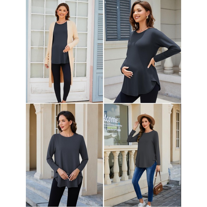 - 【Chic Side Slit Design】A modern side slit brings a fashionable edge to these maternity tops. Wear them with maternity leggings or jeans—perfect as maternity clothes for work or casual weekends.