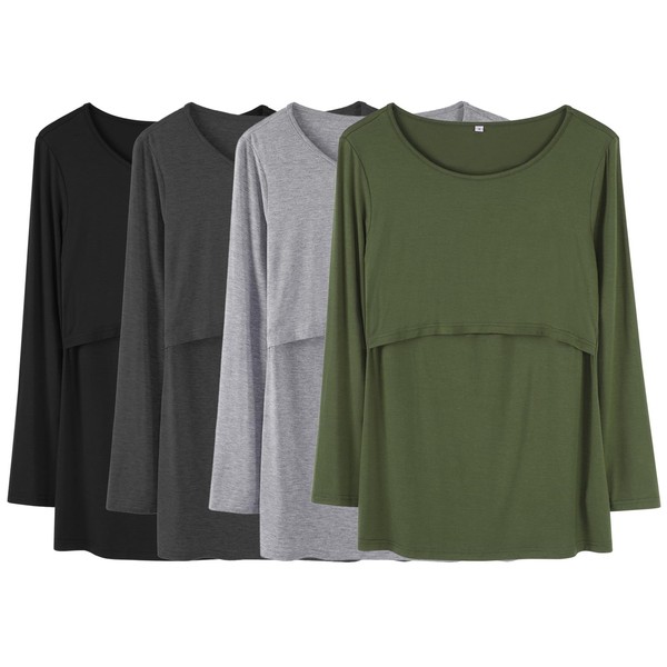 Liu & Qu 4 Pack Womens Nursing Tops Long Sleeve Double Layer Breastfeeding Shirts Fall Maternity Clothes
