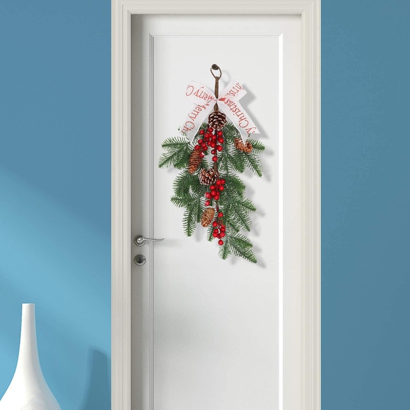 LIUCOGXI Christmas Teardrop Swag Wreath with Pine Cone and Artificial Red Berry and Ribbon Bow for Front Door Wall Hanging Farmhouse Home Decoration Ornaments
