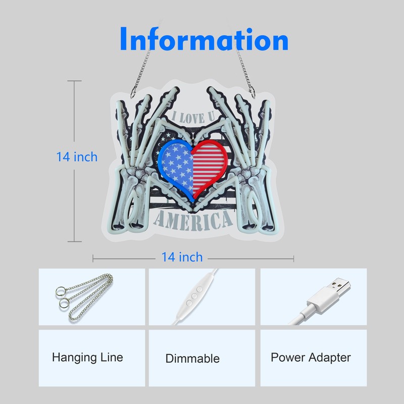 - USA Heart Neon Sign Size: 14*12 inches, powered by 5V USB interface, with a total length of 6 feet for convenient use.
