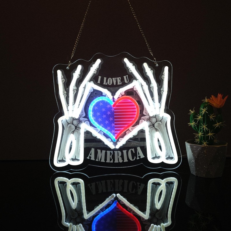 - USA Heart neon sign adopts an innovative one-piece molding process.the latest technology, reliable quality, while maintaining the best cost performance. It is the best choice for you to decorate your party.