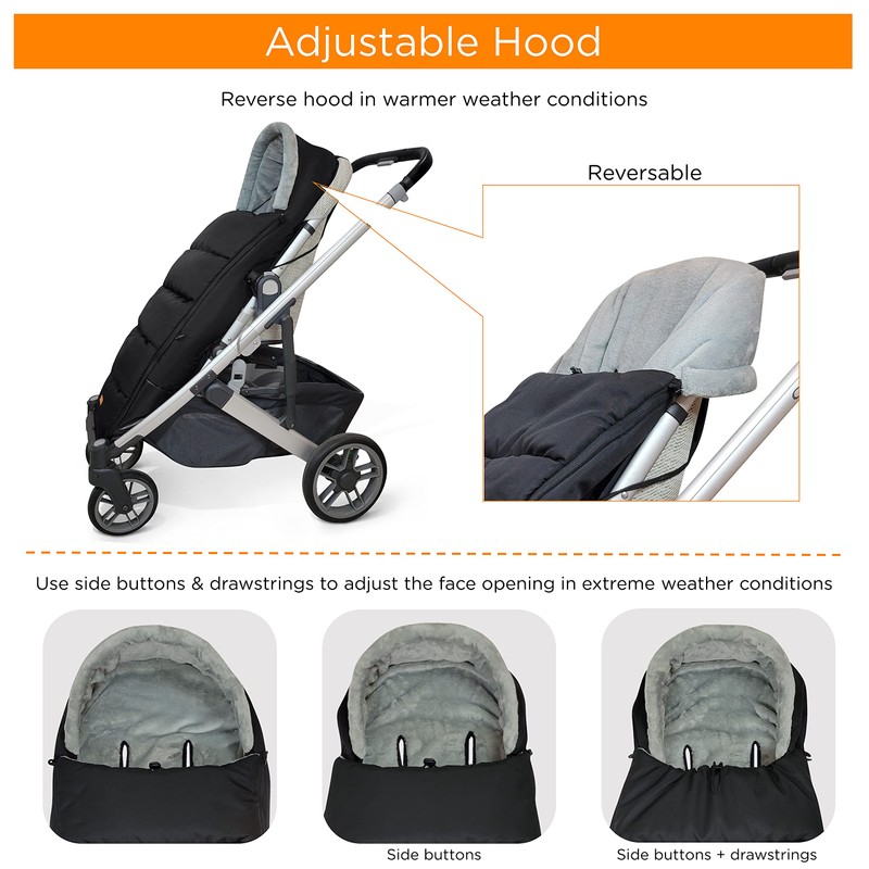 liuliuby CozyMuff - Warm Stroller Footmuff with Temperature Control - Universal Baby Bunting Bag for Cold Weather - Outdoor Sleeping Bag (6M – 4T, Black)
