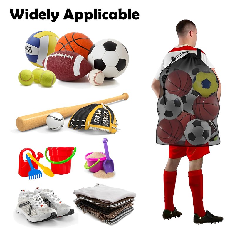 - Versatile: This ball net is suitable for storing all types of sports equipment and is often used in parks, playgrounds and gyms. In addition, it can also be used to store toys and swimming equipment, making your life more convenient and flexible.