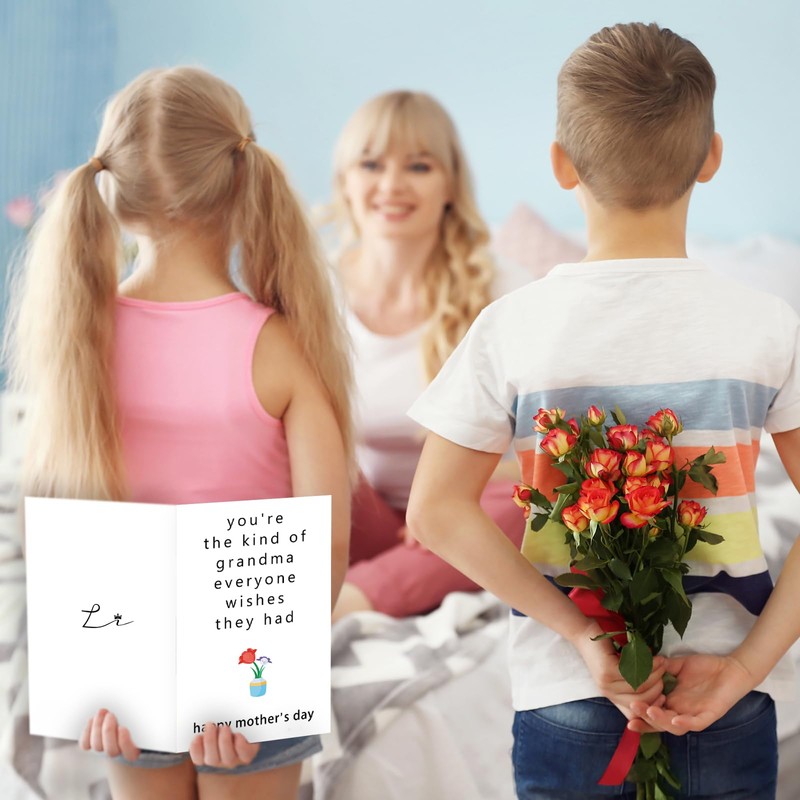 LiuuLi Happy Mother's Day Card for Grandma,Grandma Mothers Day Card from Grandson Granddaughter Grandchild,Lovely Mother's Day Gifts Idea for Women Her
