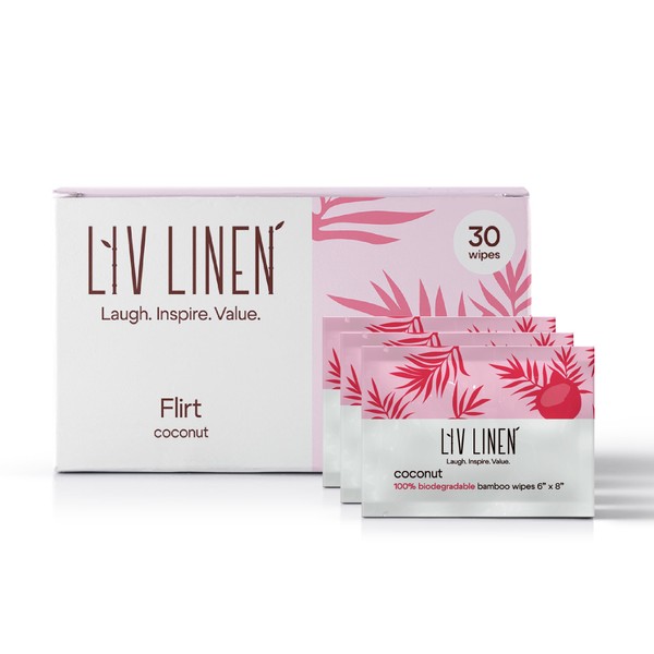 Liv Linen - Bamboo Deodorant Wipes - 30 count - Individually Packaged - Aromatherapy Scent (Coconut)