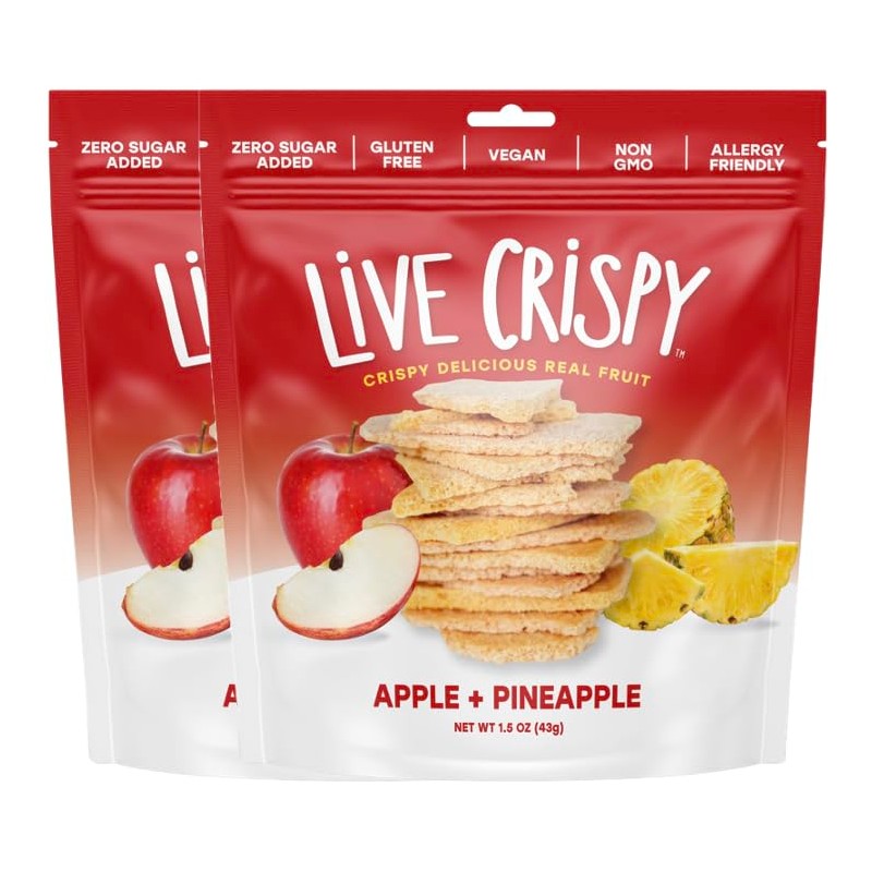 Live Crispy Fruit Chips - Pineapple-Powered Snack Packed with 100% Natural Fruit - Antioxidant-Rich, Vitamin-Packed (Apple/Pineapple) 2 Pack