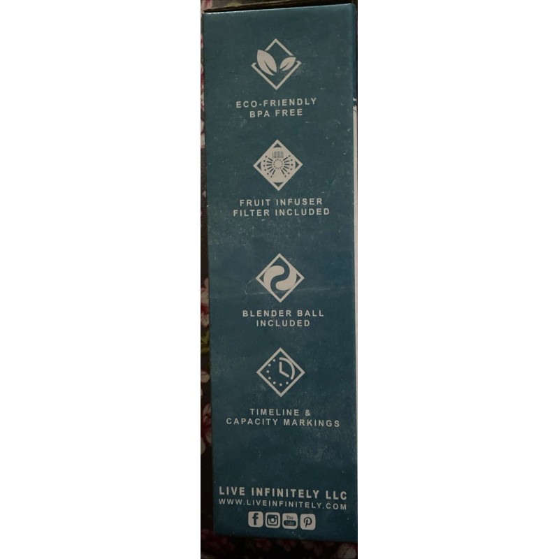 Live Infinitely BPA Free Water Bottle with Time Marker,Fruit Infuser Screen&Shaker Blending Ball