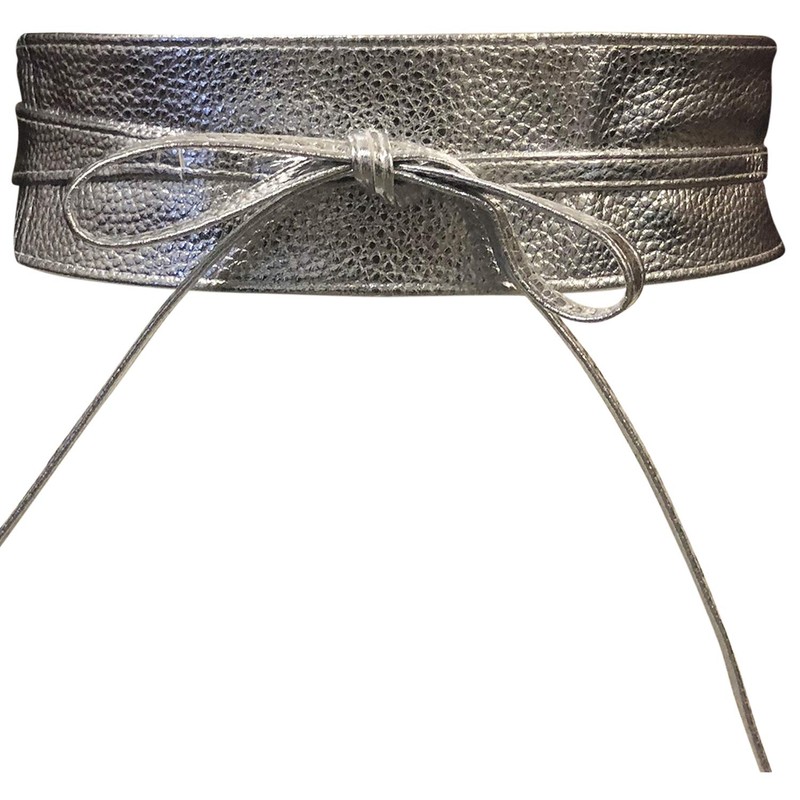 Live It Style It Women's Obi Belt, Wide Waist Band, Lace / Faux Leather, Cinch Tie, One Size, Boho - Silver leather