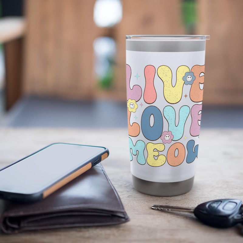 Live Love Meow Furry Friend Whiskers Happiness Stainless Steel Insulated Tumbler