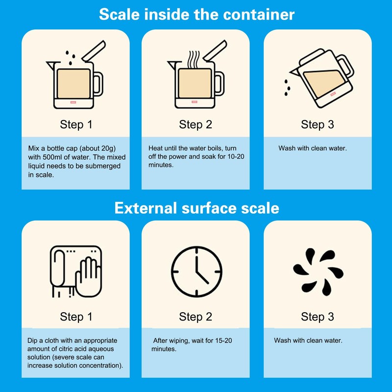 - 20g Bottle Cap Design: Each set can be used 20 times. With just one bottle cap, you can easily obtain the amount used each time. Our kettle cleaner is natural & fast acting. Get the most out of your water distiller now for only a fraction of the price without jeopardizing quality.(Note: The product will not expire, please store in a dry place. And suggest using it up within three years)