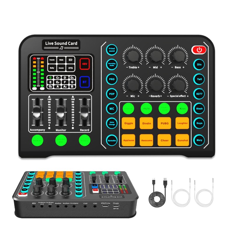 - 15 SOUND EFFECTS: Sound mixer card has 15 kinds of special effects ambience, new warm ambience sound effects, active your live room ambience, so you are no longer embarrassed in the live room.
