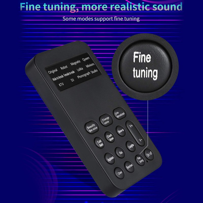 - 12 VOICE CHANGERS - With 12 voice beautification/voice‑changing/K song functions, and a fine‑tuning function, which can fine‑tune the beautification/voice‑changing.
