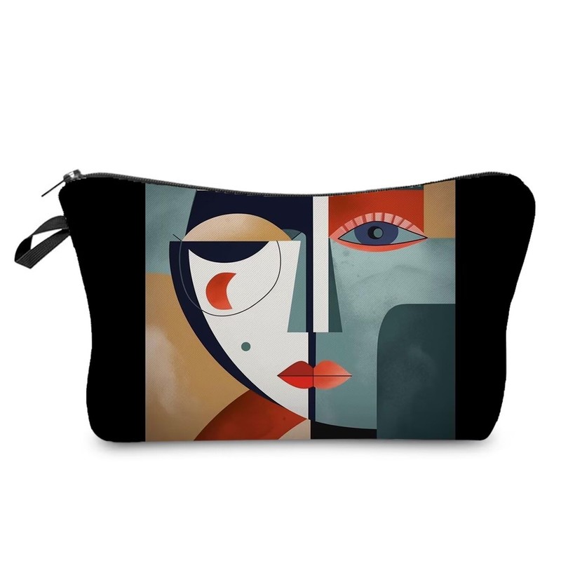 - 1.Durable Material: The Abstract Face cosmetic bag is made from soft Polyester with a metal zipper. It's soft, smooth, hardy and durable, and has a high quality. It's easy to clean with a lightweight which means easy to carry