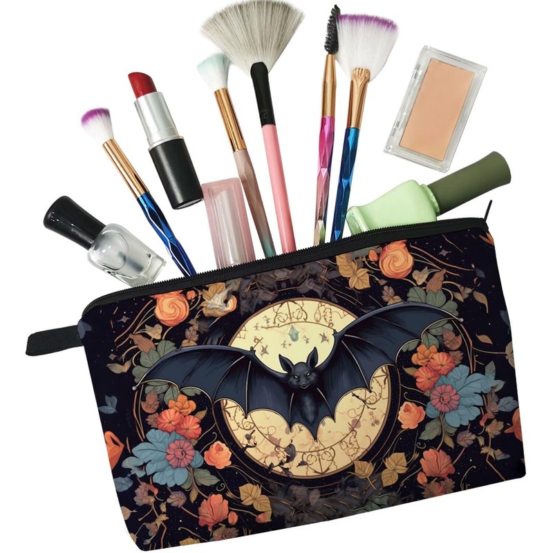 - 2.Fashion Design: The Floral Bat cosmetic bag has a clear and vibrant design, double-sided printing. There are different kinds of cute, lovely, funny and beautiful patterns to choose. The makeup bag fits both the popular aesthetic and unique personalities