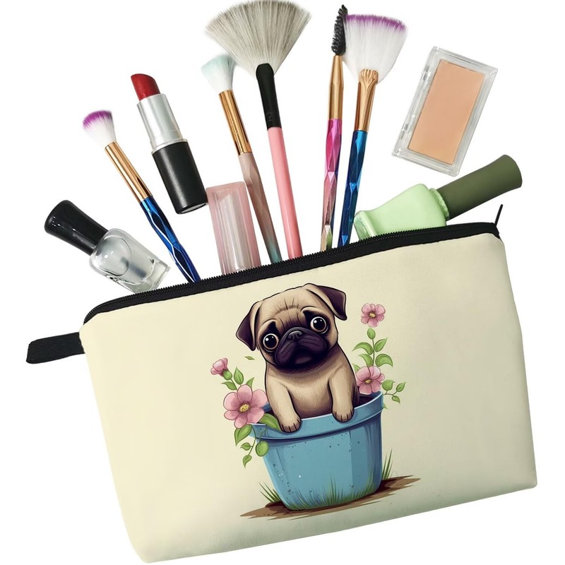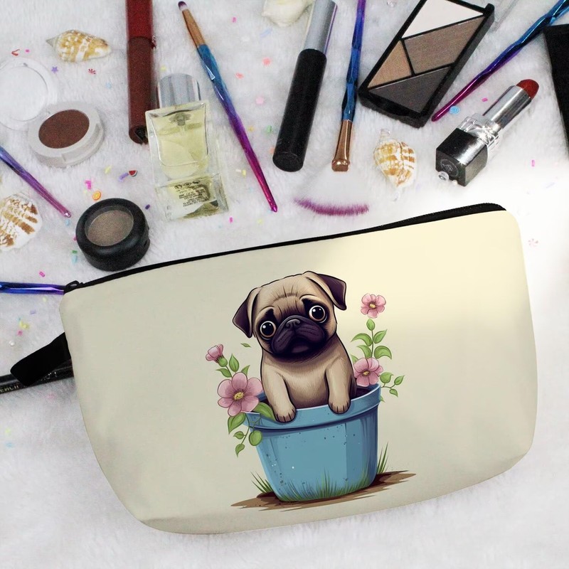 - 2.Fashion Design: The Floral Pug cosmetic bag has a clear and vibrant design, double-sided printing. There are different kinds of cute, lovely, funny and beautiful patterns to choose. The makeup bag fits both the popular aesthetic and unique personalities