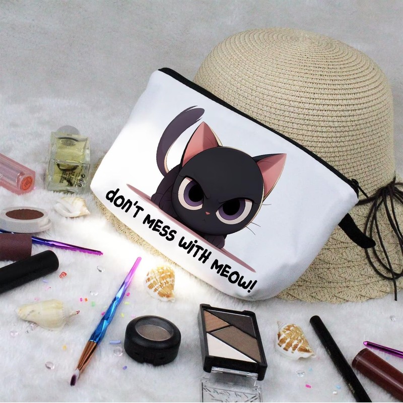 Livel lhood Funny Kitten Makeup Bag Black Cat Small Organizer Bag Toiletry Zipper Pouch Don't Mess With Meow Cosmetic Bag Birthday Present for Cat Lovers Cat Mom Women Friends