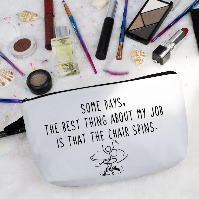 Livel lhood Funny Quotes Makeup Bag Cute Small Organizer Zipper Pouch Some Days The Best Thing About My Job Is That The Chair Spins Cosmetic Bag Birthday Present for Women Friends, hzz18086, Small