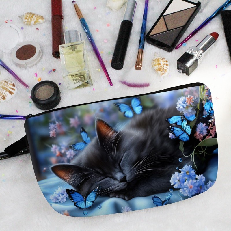 - 2.Fashion Design: The Sleeping Kitten cosmetic bag has a clear and vibrant design, double-sided printing. There are different kinds of cute, lovely, funny and beautiful patterns to choose. The makeup bag fits both the popular aesthetic and unique personalities