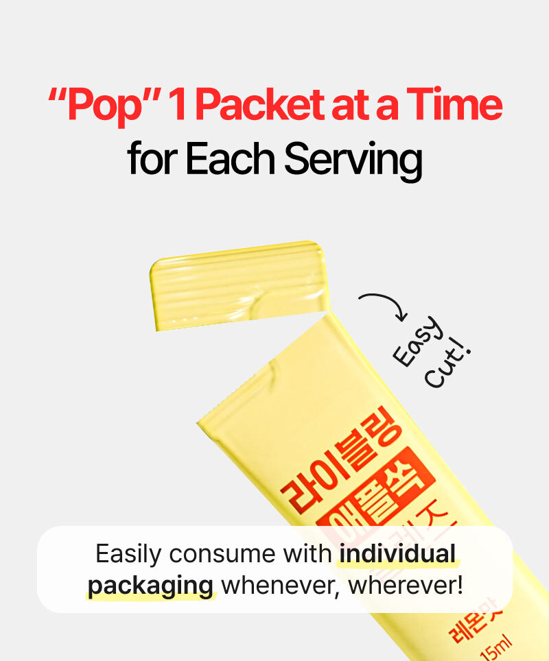 Helps to restore the balance that has been disrupted. Suitable for when experiencing repeated periods of overeating or undereating, feeling heavy as one ages, or consuming carbohydrate-rich or oily foods frequently. Conveniently consumed anytime, anywhere, in single-serving packets. Developed by R&D experts, holding a patent for vinegar-based functional beverage manufacturing method, produced in the finest HACCP facilities.
