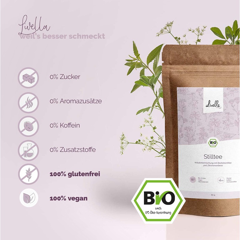 - ✅ 𝗧𝗥𝗔𝗗𝗜𝗧𝗜𝗢𝗡𝗘𝗟𝗟𝗘 𝗛𝗘𝗕𝗔𝗠𝗠𝗘𝗡 𝗥𝗘𝗭𝗘𝗣𝗧𝗨𝗥: Der Livella Bio Kräutertee ist der ideale Stillbegleiter. Bockshornkleesamen und Zitronenverbene fördern eine harmonische Stillbeziehung. Unser Stilltee wird von Hebammen empfohlen.