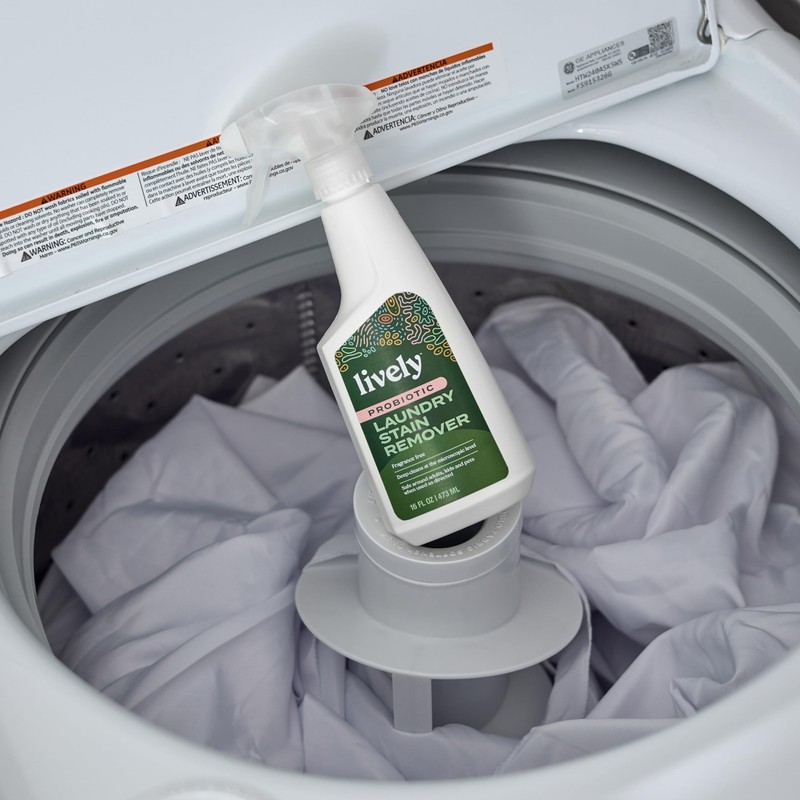 For your laundry needs, the Lively Probiotic Laundry Stain Remover is designed to tackle tough stains and odors at their source. Whether dealing with food spills, grass stains, or pet-related messes, this stain remover works deep into the fabric to ensure your laundry is left looking and smelling fresh. The gentle, pH-neutral formula is safe for all colorfast washables, providing a deep clean without the use of harsh chemicals.