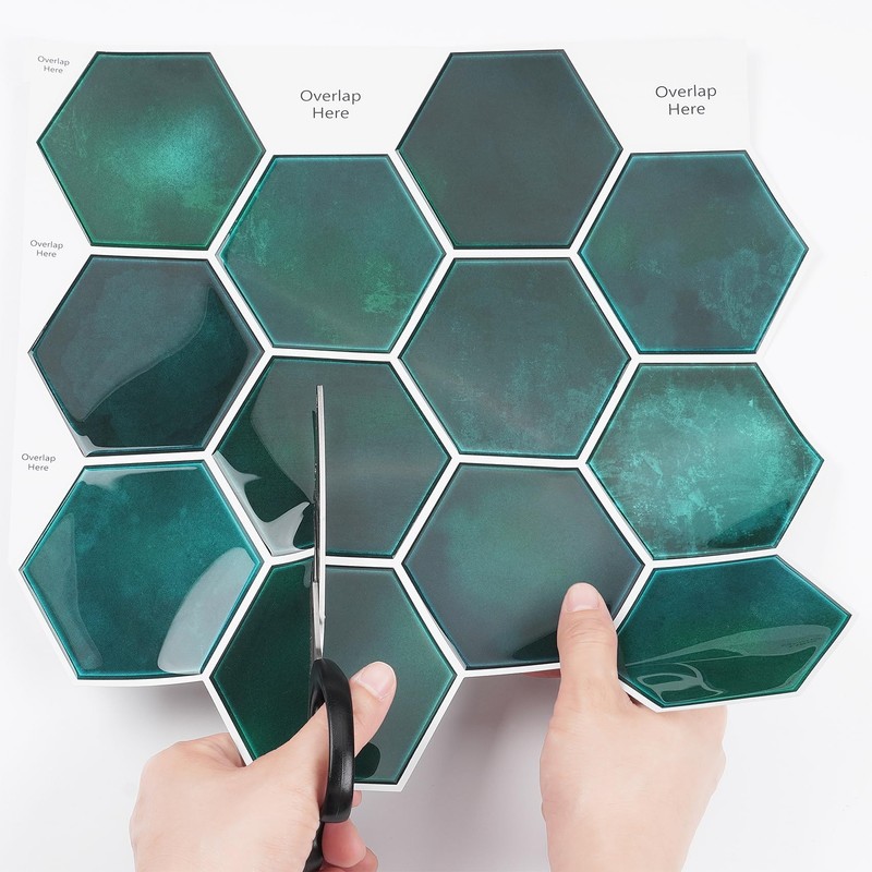- 🥑 Detail: Qty: 32-tiles, Dark green peel and stick backsplash tile hexagon 3D design, easy to clean and cut, made of vinyl, waterproof, removable, heat resistant, self adhesive, size: 12x12 inch/tile, thickness: 1.0mm.