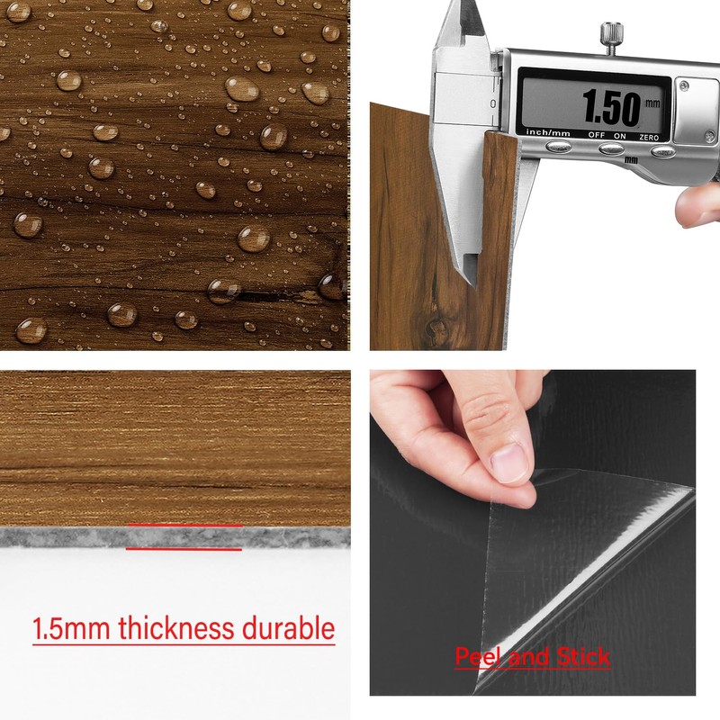 - 🏠Thick peel and stick floor tile: Thickness is 0.06inch (1.5mm). Size 6 X 36 inch included 18-Planks, made of vinyl, Acacia wood peel and stick flooring, groutable, non slip, no special tools needed.