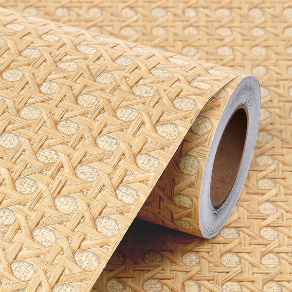 - DETAILS: Size 15.8 x78.8 Inch , total 8.65 sq.ft(40cmX2m), Self adhesive (no extra glue needed). Made of thick vinyl. Rattan wallpaper, Peel and Stick, Waterproof, Removable. ⭕Attention: Smooth faux rattan finish. NON embossed textured.