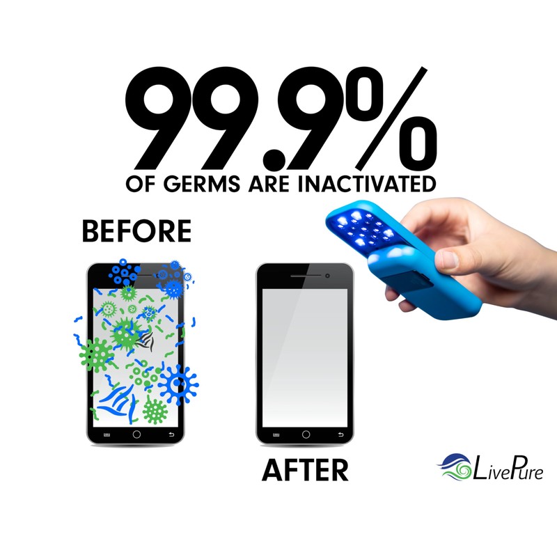LivePure Portable Handheld Dual UVA/UVC Rechargeable Sanitizer, Black