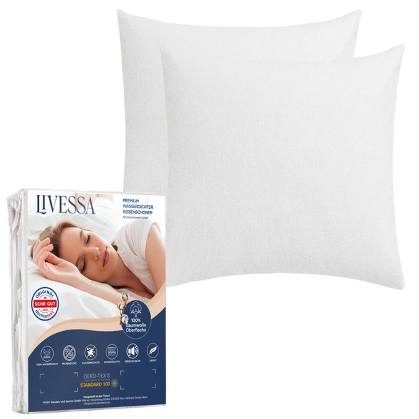 Livessa Waterproof Cushion Cover 80 x 80 cm (Pack of 2) - Pillow Protector with Zip, Pillow Protector, Anti-Dust Mite, Oeko-Tex Certified, Breathable, 100% Cotton Surface