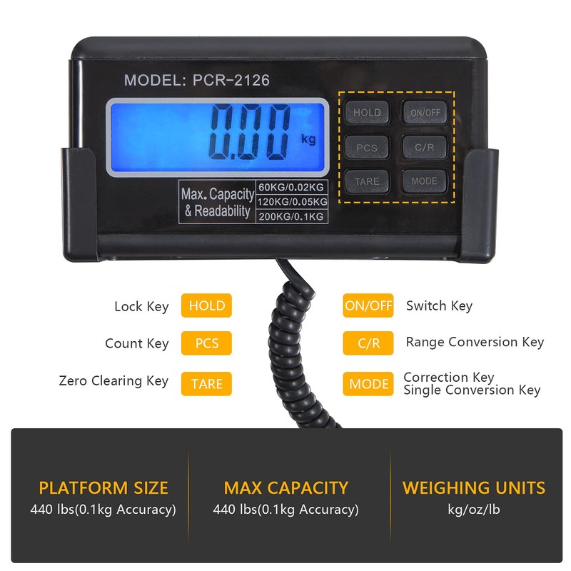 - 🐫【 FUNCTION 】3 weighing units switch: kg/oz/lb, 3 ranges: 60kg (0.02kg Accuracy), 120kg (0.05kg Accuracy) and 200kg (0.1kg Accuracy), respectively for different items. Overload and low power indication. It can be wall-mounted or desktop independent digital display.