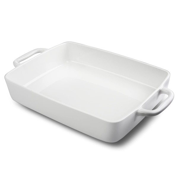 Livfodrm 9 x13 Baking Dish Ceramic Lasagna Pan for Oven, Large Bakeware Tray Rectangular Casserole Dishes with Double Handle for Cooking and Daily Use -White