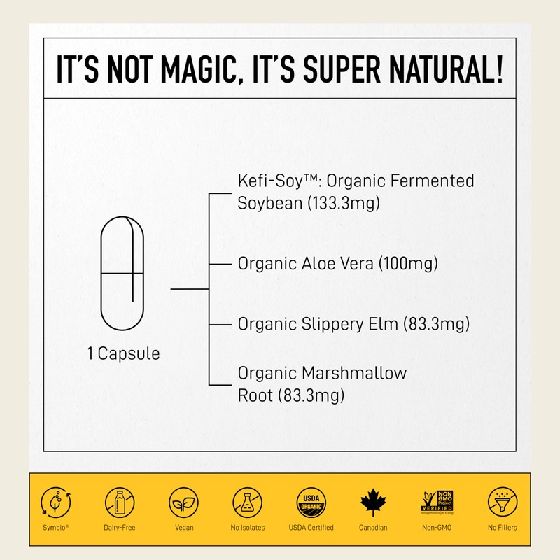 - Bolster Your Defenses: Made with fermented soybean, aloe vera, slippery elm, marshmallow root, pre and probiotics for women and men, this symbiotic supplement provides a potent blend of essential nutrients that help strengthen your overall immune function.