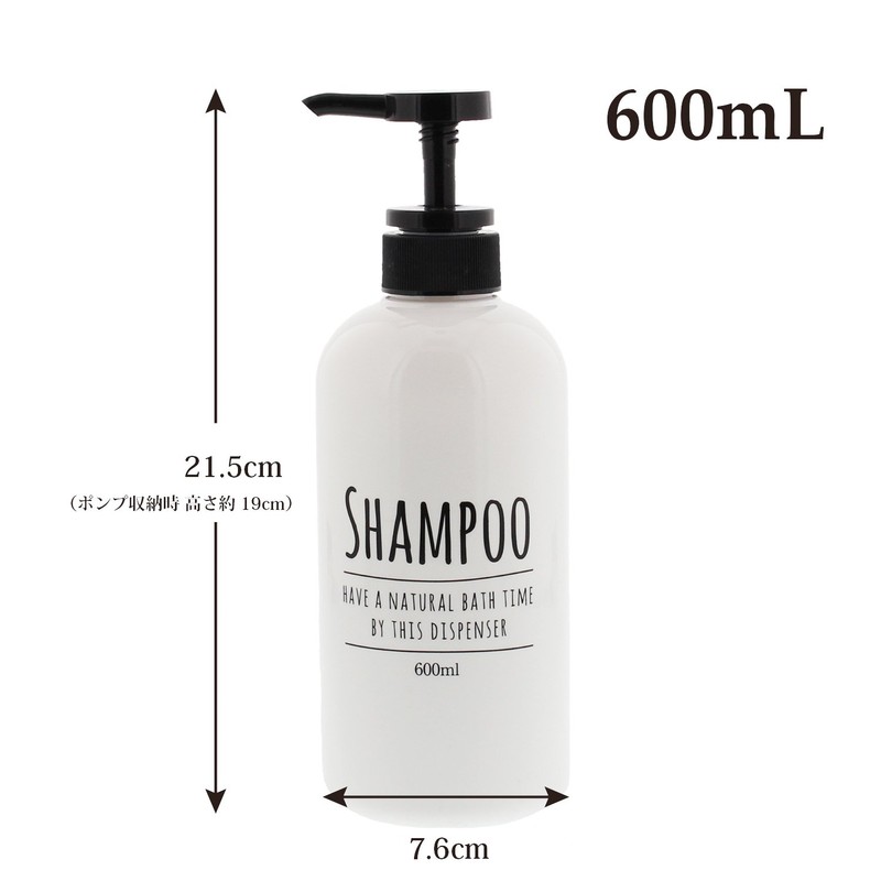 Living Dispenser Pump Bottle Round Shampoo White 600ml