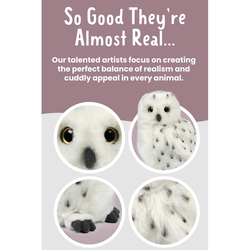 - YOUR FEATHERY FRIEND: Living Nature’s cuddly Snowy Owl is made with the softest materials great for stroking and snuggling all day long. Your new fluffy friend is the perfect cuddly companion, complete with charming large eyes, adorable feet and feathers as white as snow.