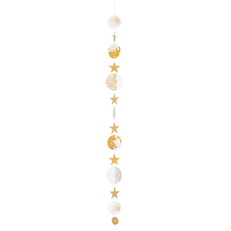 • Material: paper chain, stitched, hot foil stamping. Stars and end circles made of matte gold cardboard.